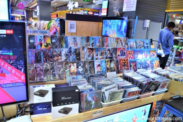 とはいえ、海賊版ショップも韓国ものの勢いを無視することはできず、店の前を通る人に「韓国の映画とドラマがありますよ!日本のもあります!」と声をかけている。ラインナップは日本の方が多いが、韓国ものを呼びかけのきっかけに使っていた。