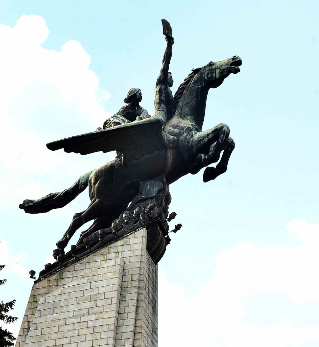 7.平壌にある千里馬のブロンズ像は、360種類以上の異なる種類の花崗岩を2500個以上を用いて土台を作り、労働者や農民を乗せ翼を広げて飛ぶように走る伝説の馬「千里馬」を表現している。